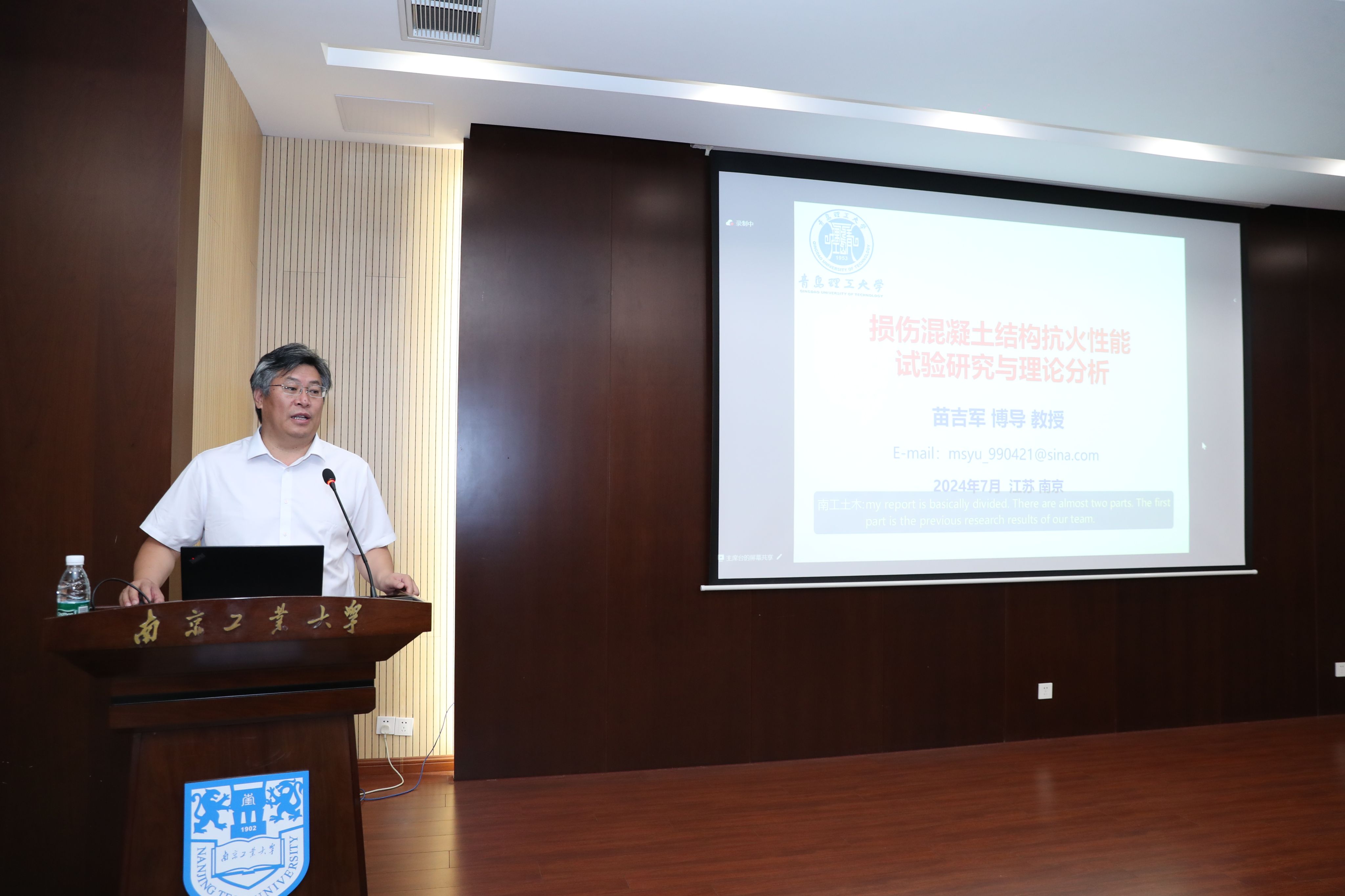 苗吉军教授以《损伤混凝土结构抗火性能试验研究与理论分析》为题,面向我国火灾频发、混凝土结构耐久性问题突出等工程背景,向学员们介绍了损伤混凝土结构抗火性能研究的意义。从团队以往的研究成果、目前的研究现状及未来着重解决的问题三个层次逐步递进呈现了系统且深入的研究工作。报告展示了损伤RC梁、柱、节点和框架的火灾后抗震性能,并基于机器学习算法开发了火灾后混凝土结构损伤检测和评估方法。苗吉军教授强调未来应建立基于人工智能大模型下的火灾精细损伤评估平台,提升我国消防救援水平、保障人民生命财产安全。他结合自身经历引导学员带着同理心做结构抗火研究,以解决面向社会需求实际问题。学员们兴趣浓厚,线上线下提问不断,互动交流热烈。