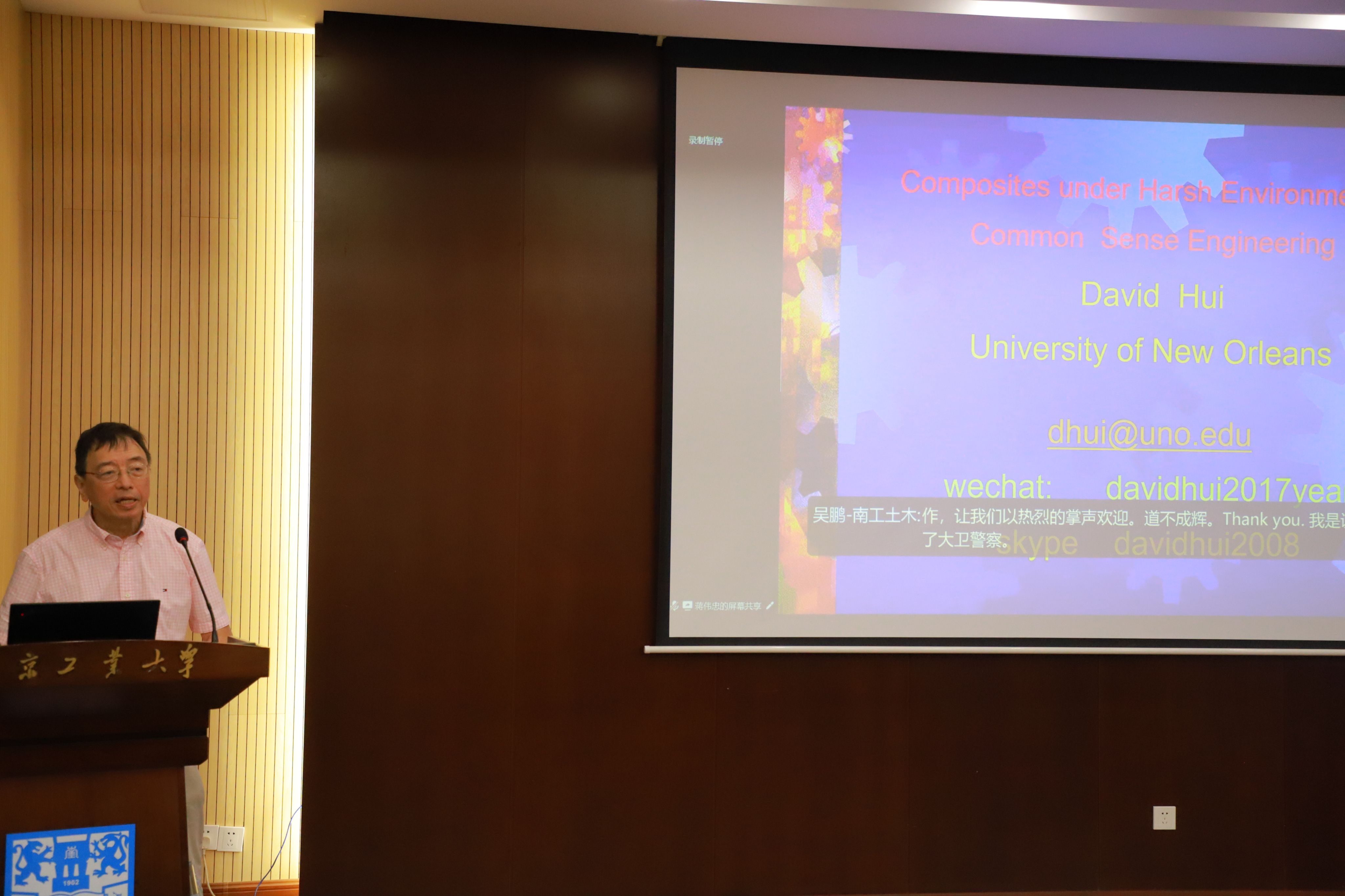 David Hui教授特色课程的主题为《Materials under harsh environments-Ⅰ》。David Hui教授巧妙地使用了多种道具,生动形象地演示了复合材料中基材和纤维的组合机理,两者相辅相成,性能互补,组合后能获得单一材料不能达到的综合性能。围绕“恶劣环境下材料”这一主题,解释了地震作用下建筑结构的运动方向,不同密度建筑群的破坏区别以及减振原理,介绍了温度下材料机械性能的影响,探讨了结构安全的重要性。David Hui教授的报告联系了众多的生活案例,讲解了工程安全、科学工程、结构破坏和材料破坏等基本概念,内容深入浅出,兼具深度和广度,有效启发了学员们的自主思考。