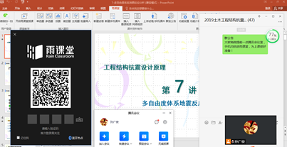 受本轮疫情影响,学校组织开展线上教学,为最大限度地确保在线教学质量,999论坛白菜大全教师李鸿晶、孙广俊将雨课堂与腾讯会议融合运用,开展本科生课程工程结构抗震设计原理线上直播教学。