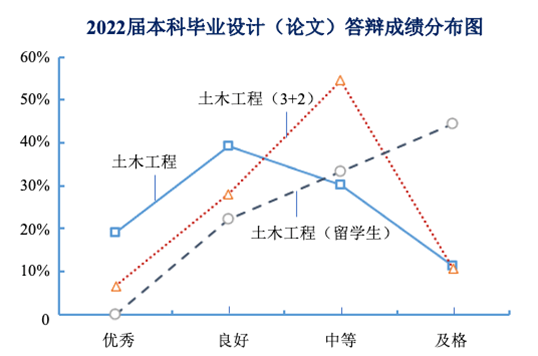 2022年6月6日,我院2022届本科毕业设计(论文)答辩工作顺利开展并完成。本届毕业设计包括“混凝土结构、钢结构、竹木结构、检测鉴定加固、装配式结构、桥梁工程、工程管理、国际工程、团队、论文”共10个方向。参加答辩的土木工程专业本科生共308人,其中答辩成绩评定为优秀、良好、中等、及格的人数,分别为59人、121人、93人、35人,另有1人未参加答辩。参加答辩的土木工程专业(3+2)本科生共121人,其中答辩成绩评定为优秀、良好、中等、及格的人数,分别为8人、34人、66人、13人,另有1人未参加答辩。参加答辩的土木工程专业(留学生)本科生共9人,其中答辩成绩评定为优秀、良好、中等、及格的人数,分别为0人、2人、3人、4人,另有1人未参加答辩。