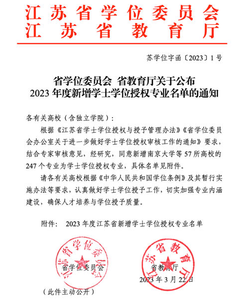 近日,江苏省学位委员会、江苏省教育厅下发了《关于公布2023年度新增学士学位授权专业名单的通知》(苏学位字函〔2023〕1号),我院智能建造专业成功获批。智能建造专业学制四年,毕业授予工学学士学位。