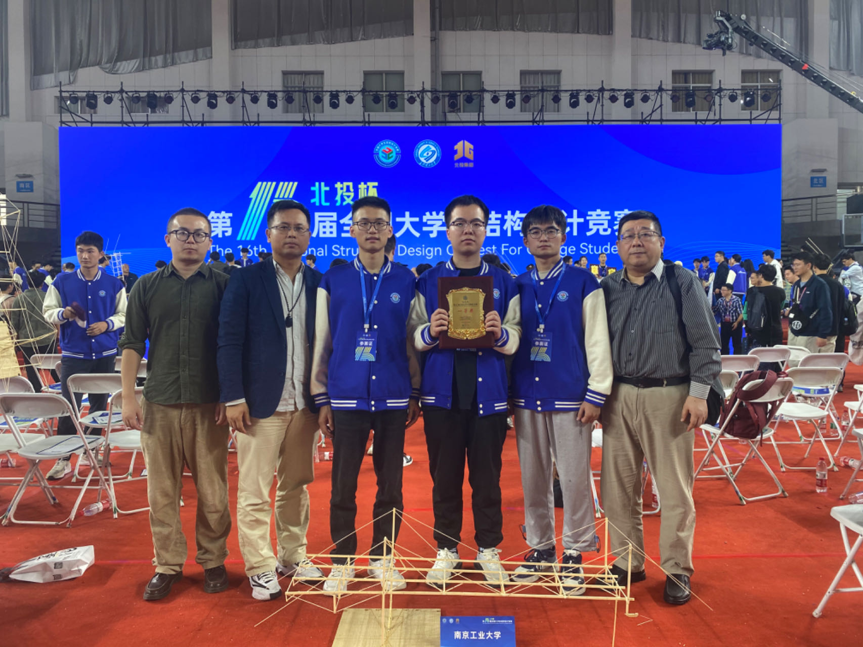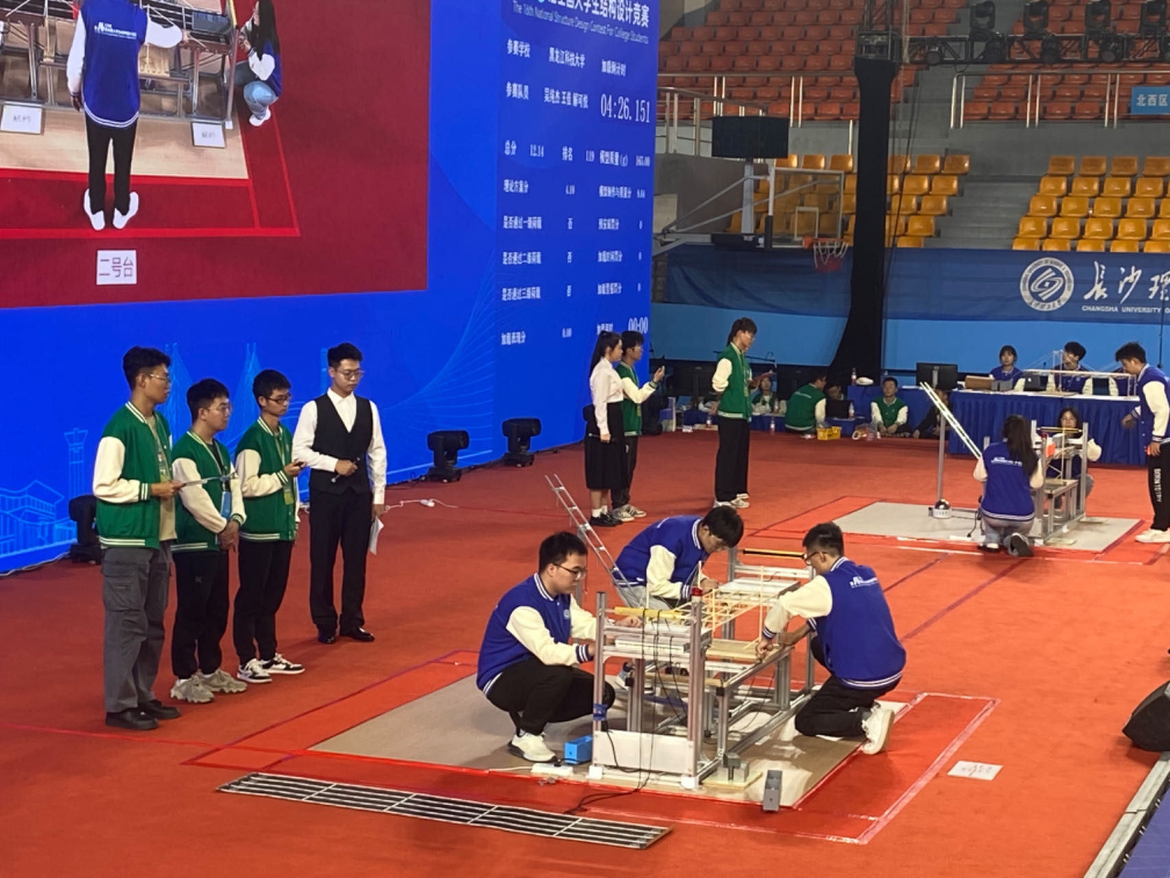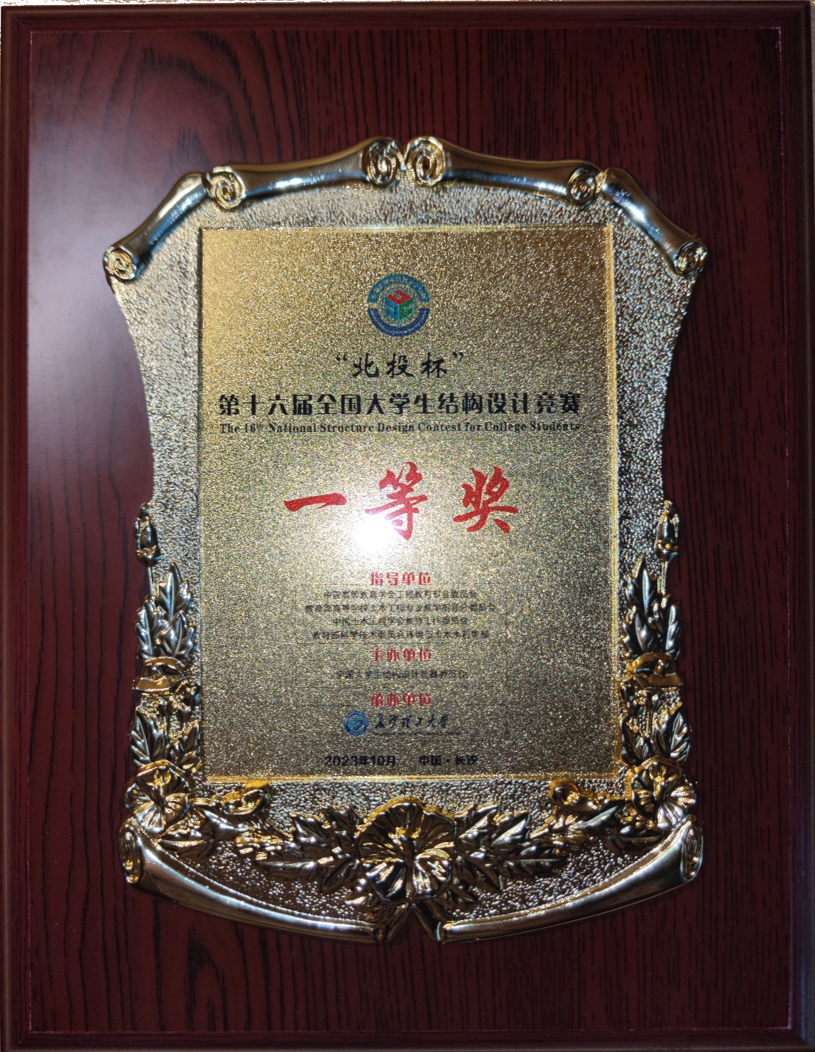 近日,第十六届全国大学生结构设计竞赛在长沙理工大学云塘校区成功落下帷幕。999策略白菜手机论坛代表队由999论坛白菜大全李镇东、王劭昀、郭胜祥三位同学组成,在赖韬、胡皓老师的指导和学院的关心支持下,历经近200天的艰苦备赛,制作了超过50个模型,经过现场16.5小时有条不紊的制作和近10小时紧张激动的加载,他们凭借轻盈的外观(总质量仅为132.55克)、精湛的手工技巧以及稳定的结构性能,以综合排名第21位的优异成绩,荣获第十六届全国大学生结构设计竞赛一等奖。
