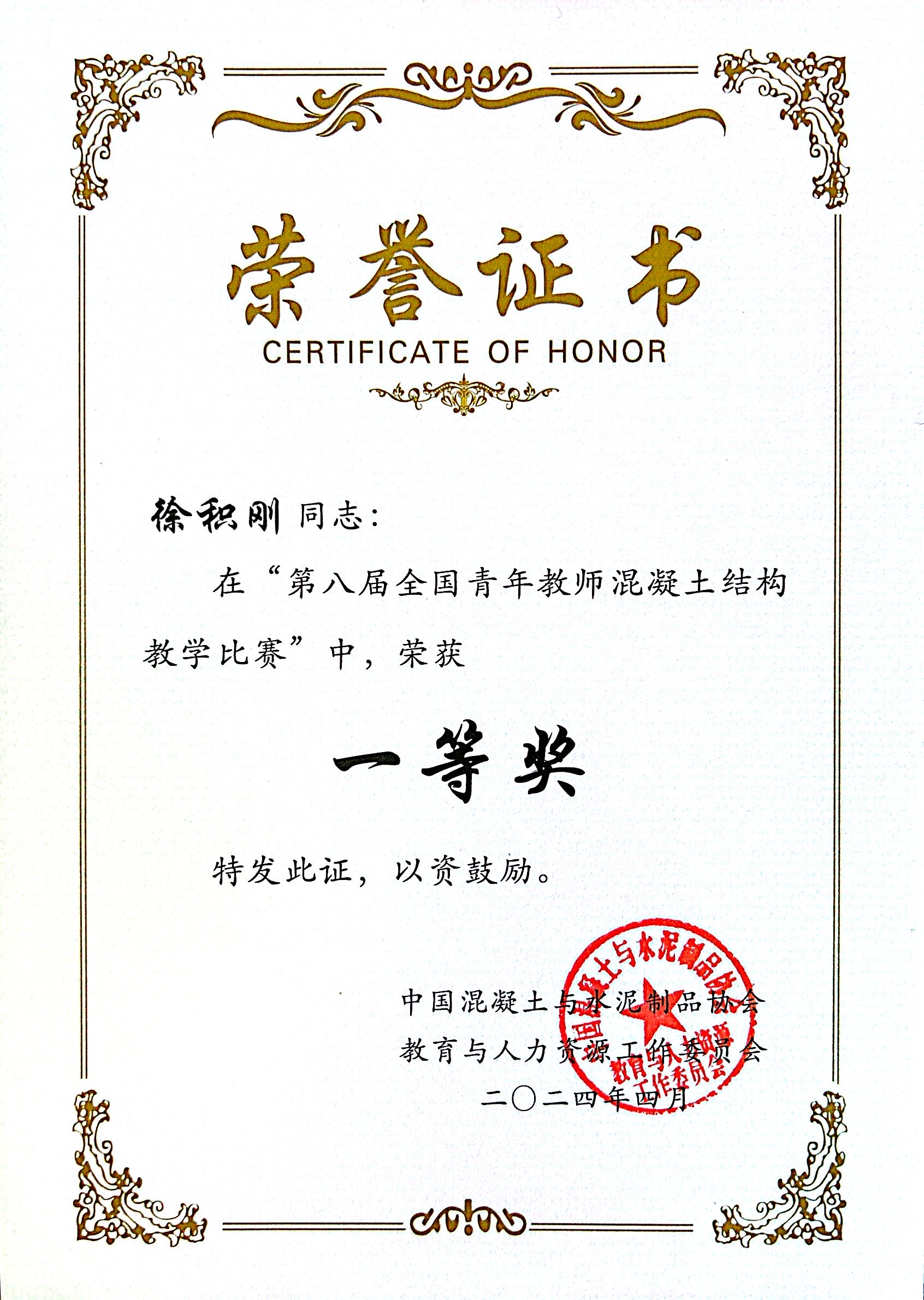 4月19日至4月21日,由中国土木工程学会教育工作委员会、教育部高等学校土木工程专业教指委、中国混凝土与水泥制品协会教育与人力资源工作委员会联合主办的第八届全国青年教师混凝土结构教学比赛在合肥工业大学举行。999论坛白菜大全青年教师徐积刚参加了此次比赛并荣获一等奖(最高等次),实现了学院教师在该项比赛上的成绩突破,充分展现了学院青年教师扎实的教学基本功和优异的教学能力。