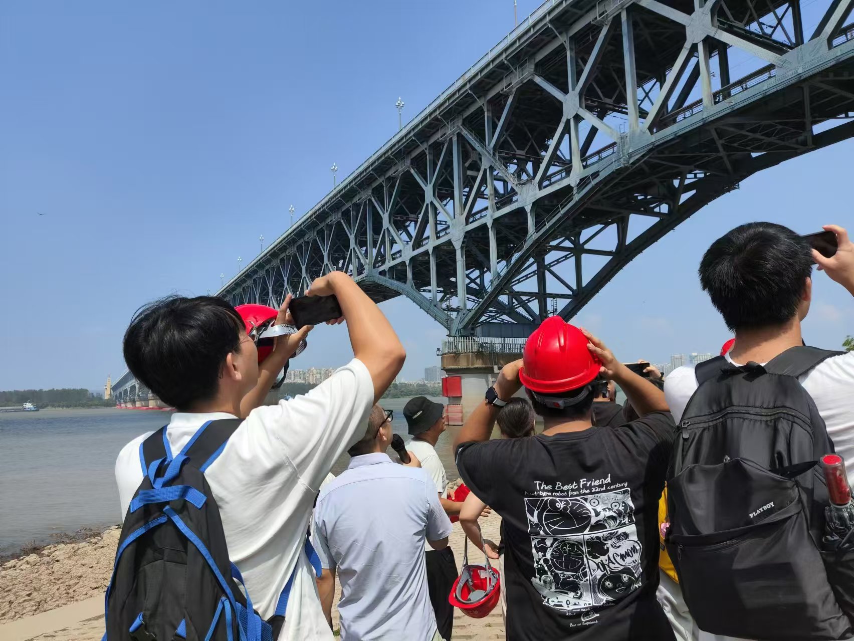 9月10日,同学们分批参观了南京长江大桥(钢桁架梁桥)和桥浦仪公路跨江大桥(斜拉)。通过专业老师的讲解和现场观摩,同学们对这两座桥梁的建设背景与意义、采用的关键技术和突破、发挥的作用与价值等方面有了深入的了解,也激发了对大国工程的自豪与骄傲。
