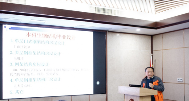 参观活动结束后,学院副院长方海教授主持召开了专题会议,主要包括全体教职工理论大学习和青年教师毕业设计能力提升两个环节。首先,学院党委张涛书记带领全体教职工学习了党的十九届六中全会审议通过的《中共中央关于党的百年奋斗重大成就和历史经验的决议》;然后,学院钢结构资深专家黄炳生教授作了题为《本科生钢结构毕业设计》的讲座,向青年教师们传授了近30年宝贵的教学、设计与科研经验。