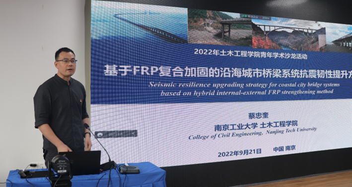 第三环节,围绕国家自然科学基金申报工作开展了教师沙龙。首先,方海副院长作了题为《2022年国家自然科学基金工作总结暨2023年申报动员》的报告,并结合已立项的两个NSFC面上项目向青年教师讲授了科研工作与基金申报经验。然后,东南大学999论坛白菜大全谢天宇副研究员作为特邀专家作了题为《高性能低碳混凝土材料的结构化应用》的精彩报告,介绍了超高性能混凝土、地聚物混凝土、再生混凝土、纤维增韧混凝土等新材料结构系列化研究。最后,我院蔡忠奎副教授、徐金俊副教授、张新晨副教授及蔡云竹博士分别作了题为《沿海城市桥梁系统基于FRP复合加固的抗震韧性提升方法》、《可持续工程材料与结构》、《锈蚀钢筋混凝土梁柱节点性能劣化研究》、《基于合成漩涡法的各向异性脉动风场模拟研究》的学术报告。