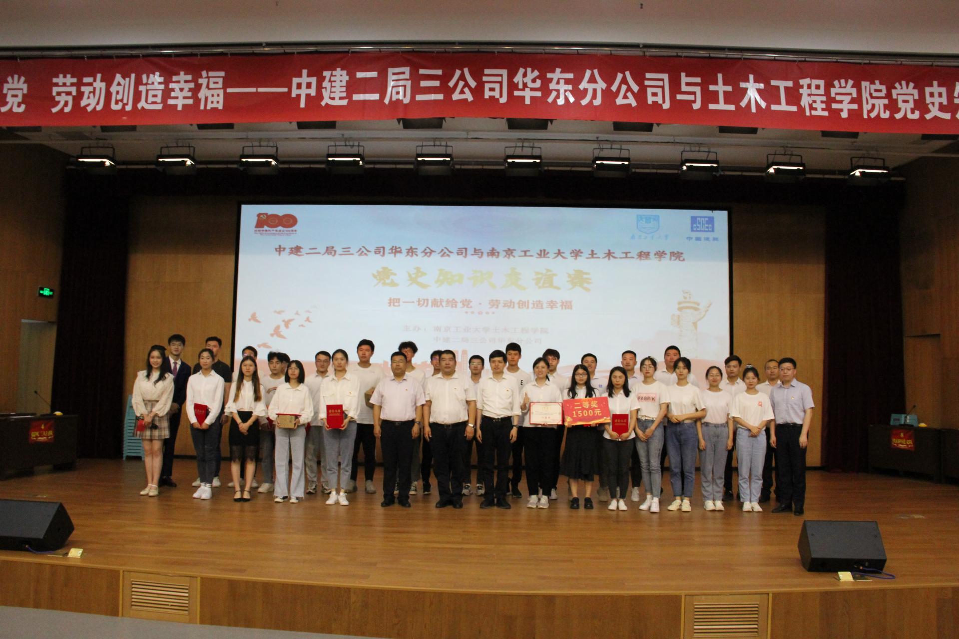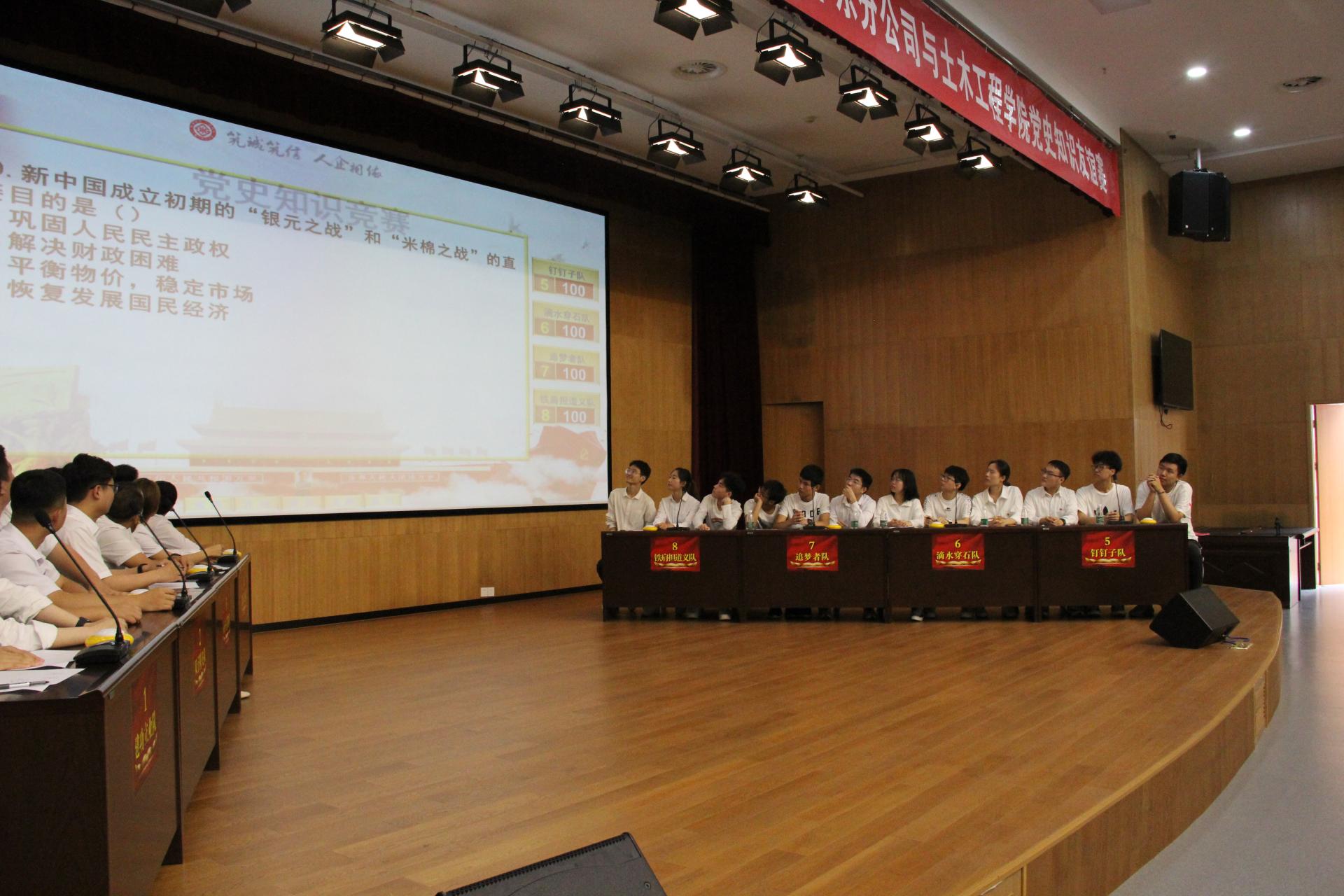 6月9日下午,白菜官网999论坛白菜大全与中建二局三公司华东分公司共同举办“把一切献给党,劳动创造幸福”党史知识友谊赛。中建二局三公司华东分公司党委副书记、纪委书记、工会主席刘令春、党群工作部部长姜清国等率队参加,999论坛白菜大全党委书记张涛,党委副书记路遥,学生事务办公室老师以及参赛选手、全院学生代表等参加本次活动。