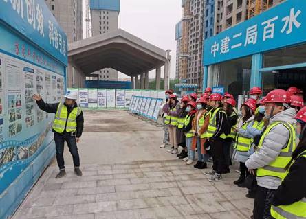 首先,同学们来到工程施工现场,项目上工作人员全程讲解了施工现场情况,详细介绍了装配式建筑的具体施工程序及细部做法,同学们边参观并聆听讲解,学习了书本上没有的实践知识,提升了对工程现场施工技术与管理的认识。在参观过程中,现场工作人员还对同学们提出的问题进行了详细解答,现场清洁的环境和有序的管理给大家留下了深刻印象。