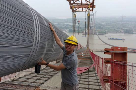 巨索横空越天堑,气势如虹挽千钧,托举交通强国梦,铸就桥梁工匠心。
