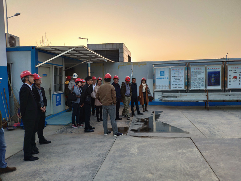 最后党员教师离开中建八局三公司总部,前往位于仙林地区的二十八所智慧工地现场,参观了实体沙盘和工程现场,驻地专业工程师对楼宇的建造过程及施工难点进行了讲解,使得大家进一步了解了目前建设工程智慧建造领域的最新动向及实务需求,有效地推进产学研合作的发展空间。
