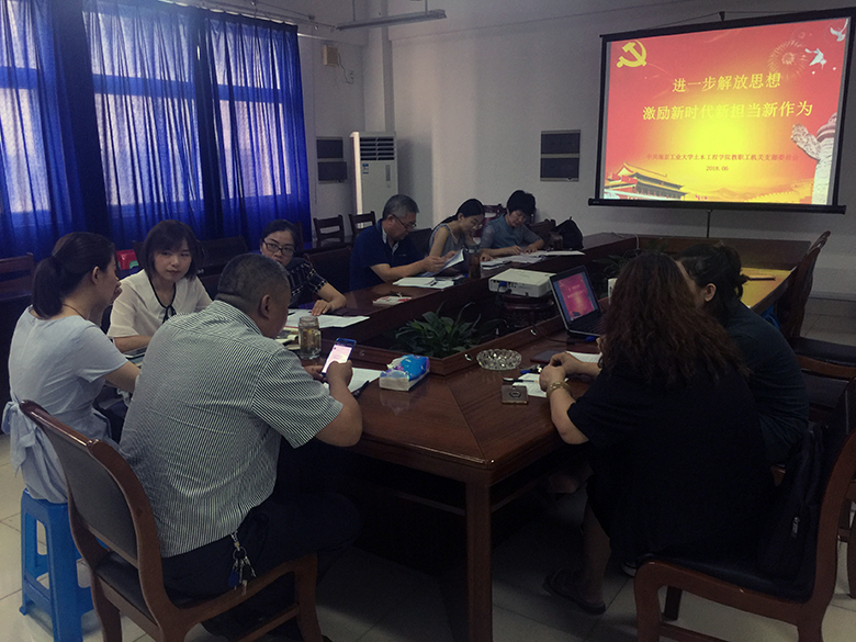 根据省委组织部苏通组〔2018〕47号文《关于召开“进一步解放思想,激励新时代新担当新作为”专题组织生活会的通知》(以下简称“通知”)要求,999论坛白菜大全机关党支部于2018年6月22日召开了“进一步解放思想,激励新时代新担当新作为”专题组织生活会,学院党委书记欧谨、副书记周静等支部全体党员干部参加了会议。