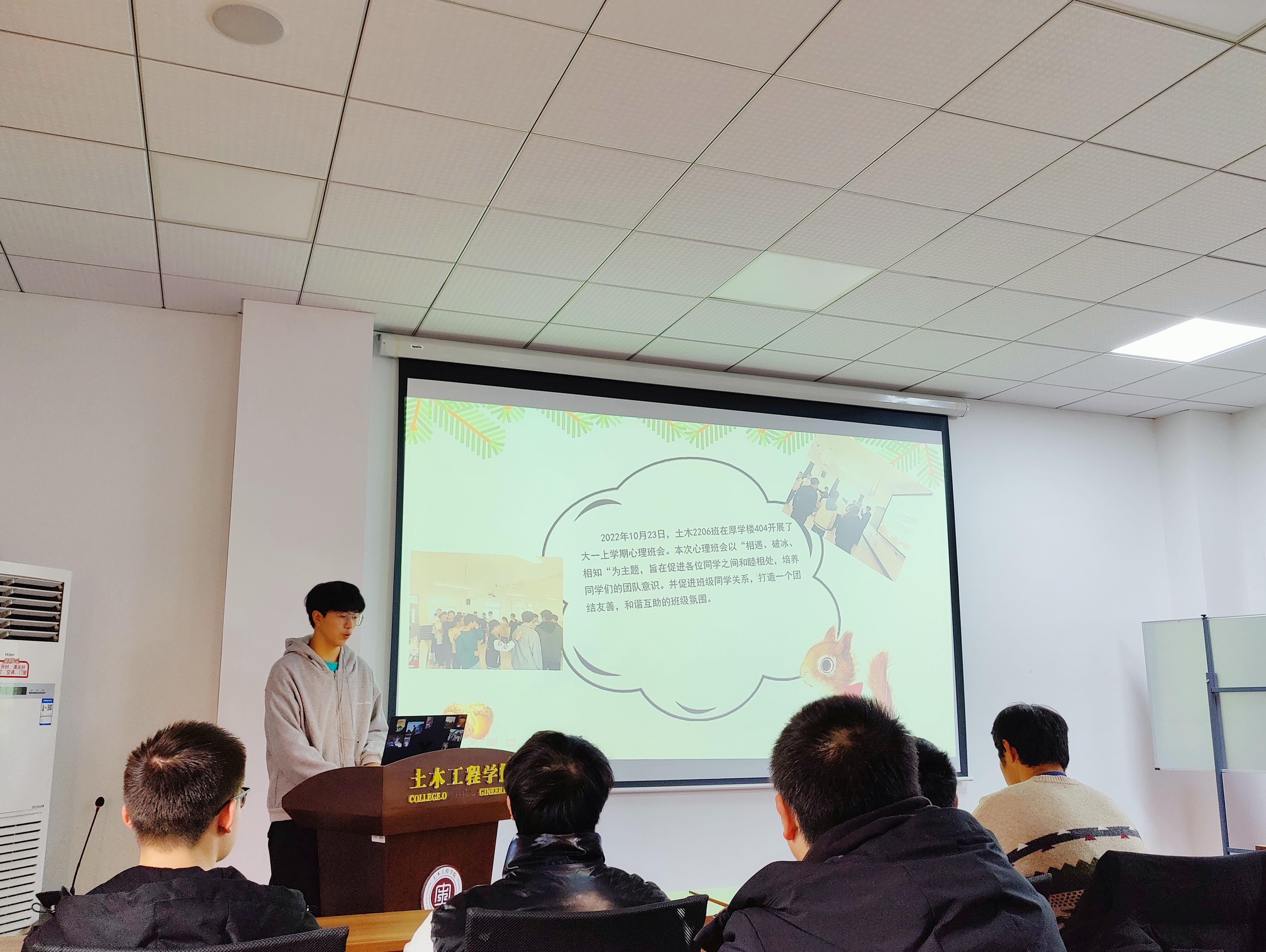 活动现场,各班心理委员通过PPT的方式展示了本班活动策划、开展班会的相关情况,班会主题多种多样,包括“如何释放心理压力”、“如何提高人际交往能力”、“创建和谐宿舍”等,部分班级在开展活动的同时还结合了趣味小游戏,进一步提高了同学们的积极性。最终,土木2203获得一等奖,土木2201、土木2206获得二等奖,土木2202、土木2205、土木2208获得三等奖。