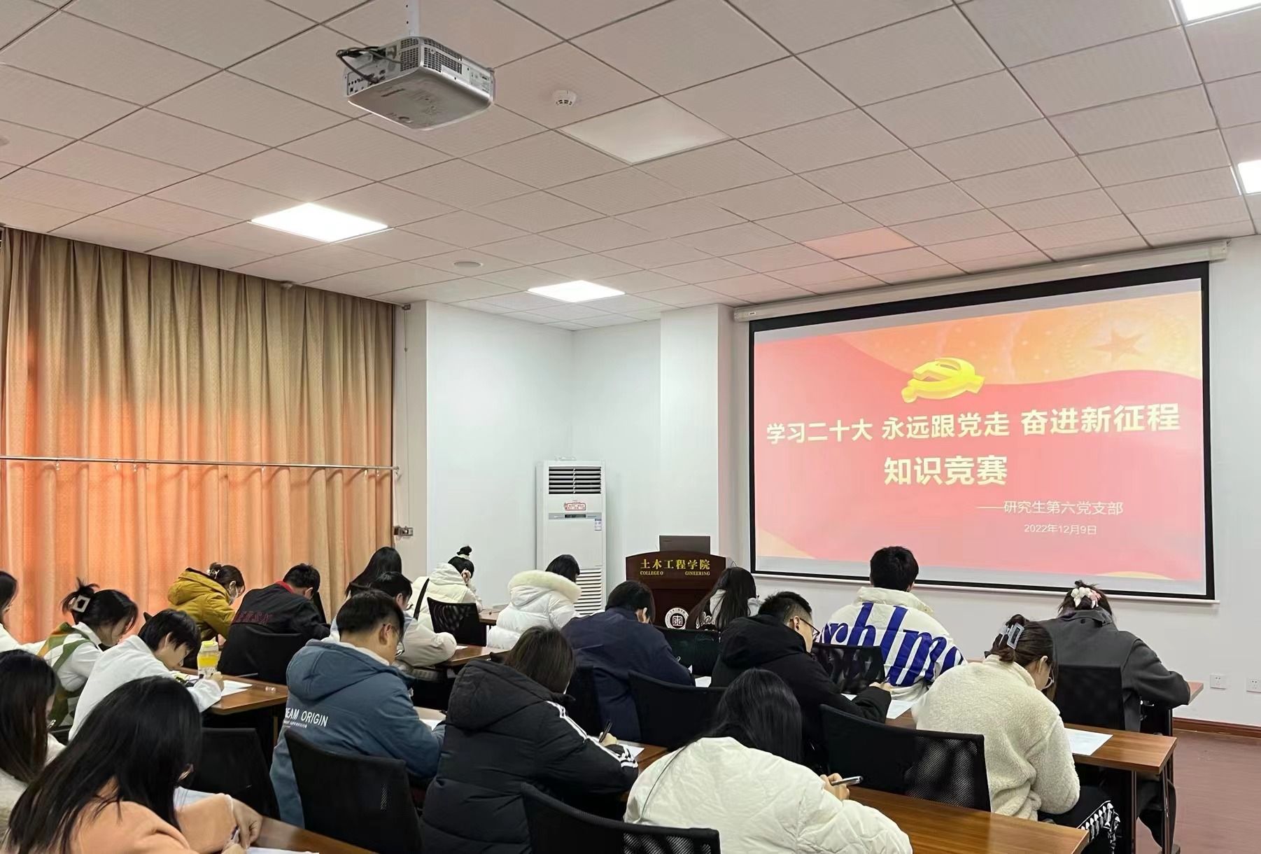 为营造学习党的二十大精神的浓厚氛围,动员广大研究生党员深入学习党的二十大精神,999论坛白菜大全研究生第六党支部于2022年12月9日在学科楼104开展以“学习二十大,永远跟党走,奋进新征程”为主题的知识竞赛活动,本次活动由研究生第六党支部副书记刘淑贞主持。