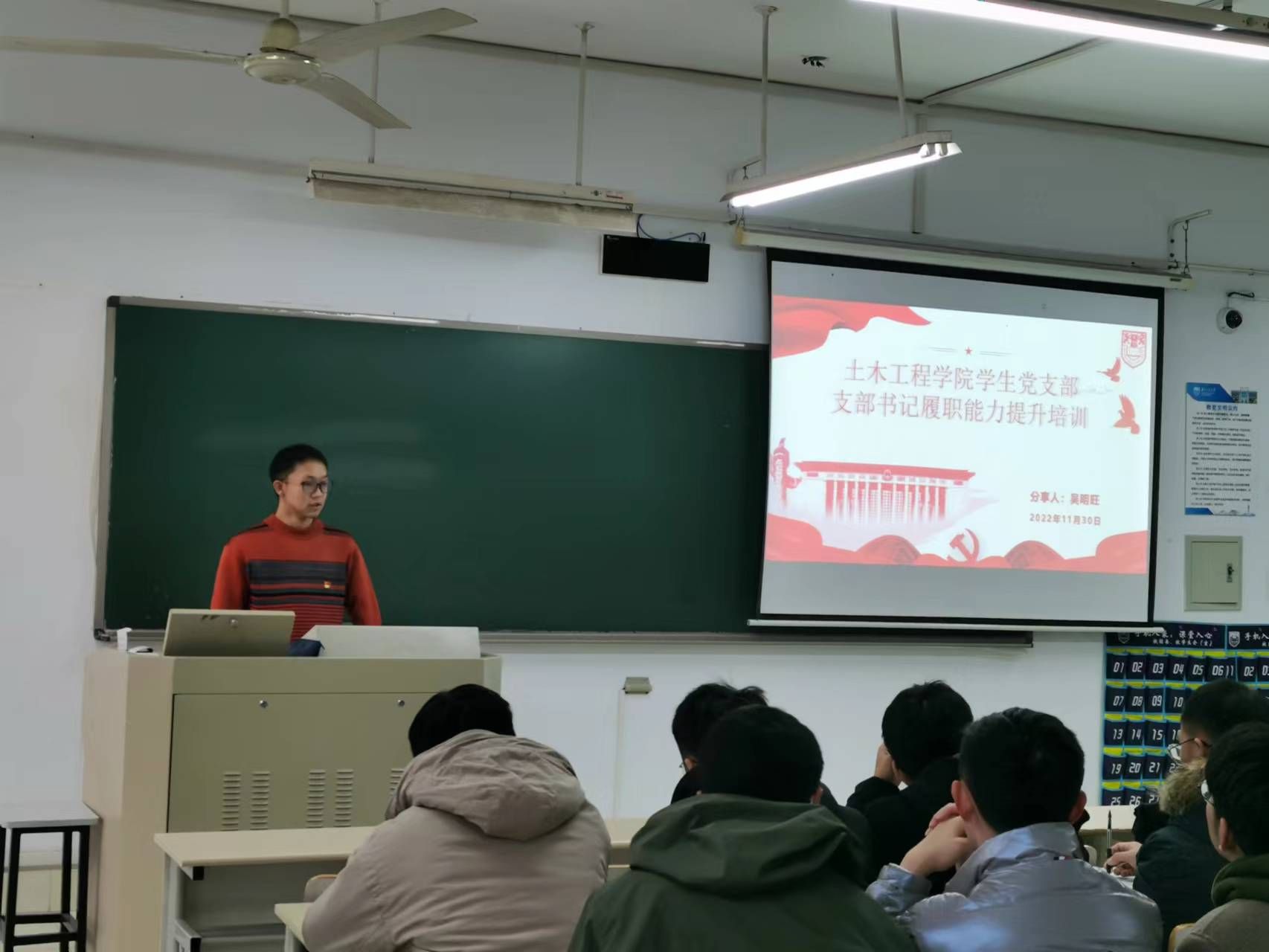 为全面学习、贯彻党的二十大精神,持续提升学生党支部书记、支委、支部骨干的党性修养、理论水平和履职能力,11月30日,999论坛白菜大全开展党支部书记履职能力提升培训会,培训会由学院兼职辅导员谢璐璐老师主持,邀请学院党建助理、原研二支部书记吴明旺担任分享嘉宾,全院10余名支部书记、副书记,40余名支委、支部骨干参加培训。