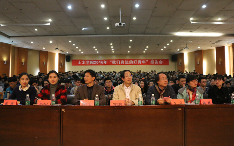 颁奖仪式结束后,“我们身边的好青年”报告会开始。国家奖学金获得者贺智伟和徐航同学以自身经历鼓励大家全面发展,追求卓越;2016年中国土木工程学会高校优秀毕业生土木1202班孙意斌同学与大家分享了该如何度过有意义的大学四年;创新竞赛突出个人土木1204班张浩同学从科创竞赛、学术课题、兴趣爱好三方面展示了自己取得的成果;学习进步先进个人土木1405班马驰同学以自己的经历鼓励目前成绩不理想的同学要保持一颗上进的心,努力成为更好的自己;接下来,优秀志愿者代表、暑期社会实践优秀个人与团队代表、赴英国文化学习交流团学生代表金格格同学、万超同学、黄津成同学、李先铭同学依次上台与同学们分享了自己的经历与收获。
