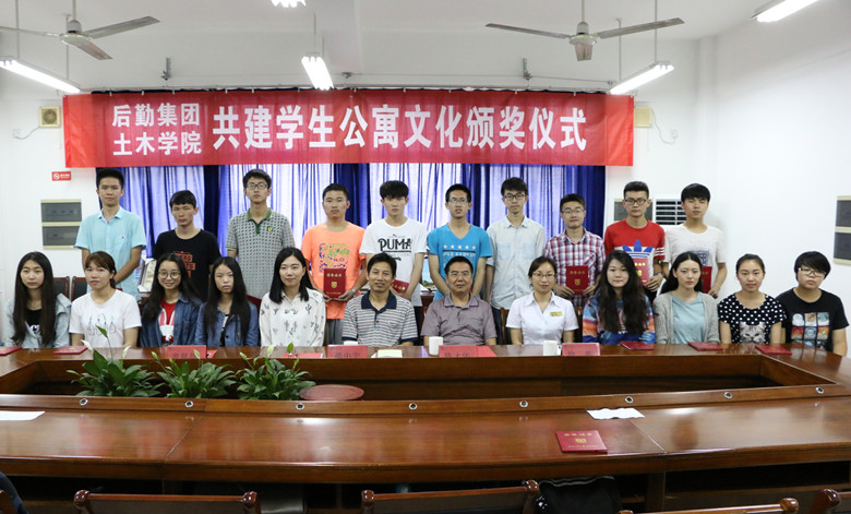 999论坛白菜大全党委副书记熊中宏、后勤服务集团副总经理陈才华、公寓中心副主任徐雯,土木学院分团委副书记黄晨晨依次为获奖同学颁发荣誉证书并合影留念。