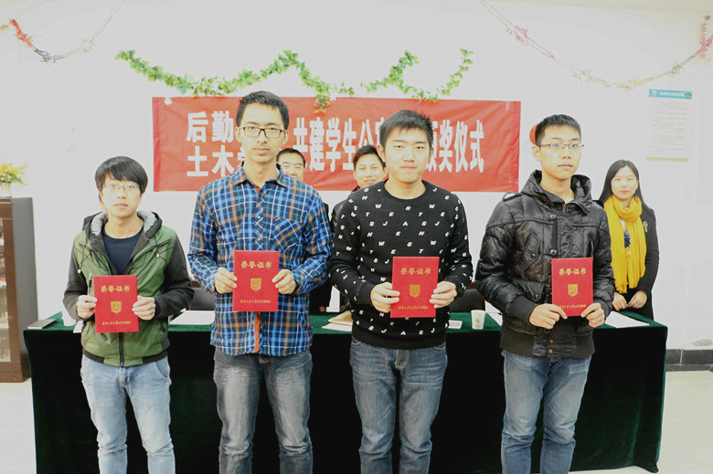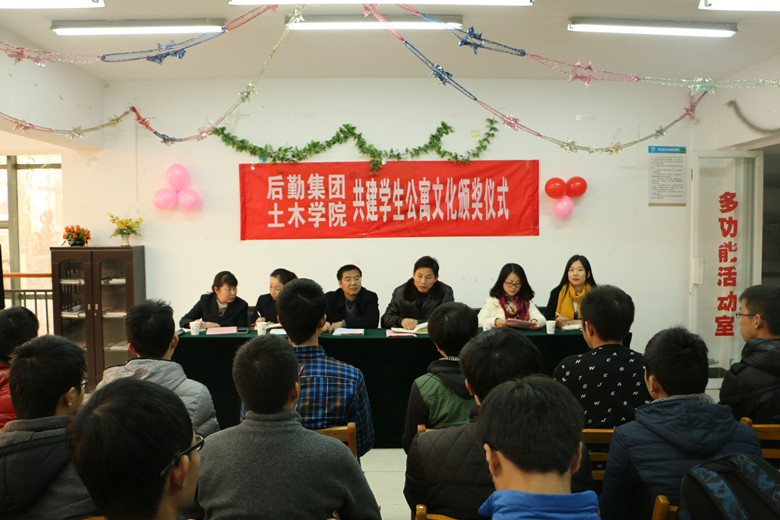 为进一步提升校园文化建设内涵,展示大学生青春风采,激发大学生审美追求,体现校园文化正能量,999论坛白菜大全协同后勤服务集团在全院学生中开展了“正青春、正能量”主题书法摄影大赛。12月8日下午3点30分,土木学院与后勤服务集团联合举办的共建学生公寓文化“正青春、正能量”书法摄影大赛颁奖仪式在象山苑17栋大学生活动室顺利举办。土木学院党委副书记熊中宏、后勤服务集团副总经理陈才华、土木学院分团委书记李寿菊、公寓中心主任周丽、副主任徐雯,辅导员黄晨晨及此次书法摄影大赛获奖同学出席了颁奖仪式。