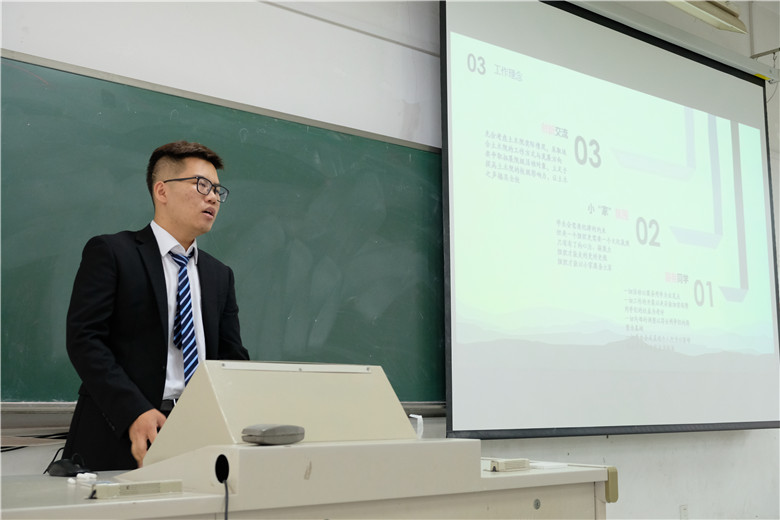 大会伊始,五位主席团候选人吕哲玮,周俊辉,李莹,徐杨,徐泽森依次发表竞选演讲,介绍一年度工作经历与感受,展望未来工作的同时又彰显了作为候选人的自信与风采。在接下来的答辩环节中,面对老师以及同学们多角度,高深度的问题,几位候选人处变不惊,以高超的应变能力顺利地完成了答辩。在与老师和各学生组织主席的互动中,候选人们悉心倾听他们的建议,为未来的工作开展打下了坚实的基础。接着,学生会主席王浩发表述职报告,他总结了学生会开展的常规工作和重点工作,反思了如今学生会工作中存在的不足,希望新一届的学生会能扬长避短,团结一心,把学生会工作做得更出色。最后,在紧张的数票、唱票、计票后,张文闻老师现场公布了竞选结果,周俊辉,李莹,徐杨,徐泽森四位候选人成功当选新一届学生会主席团成员。
