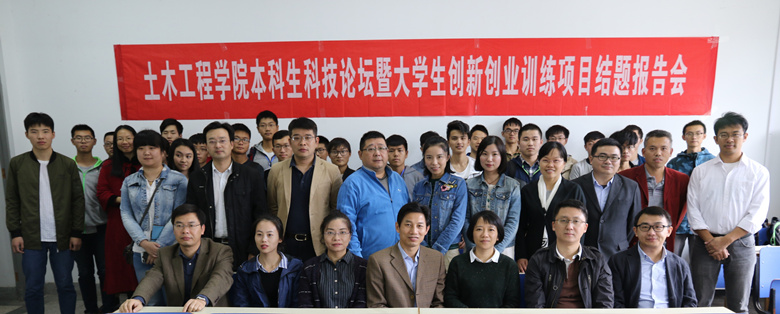 本届本科生科技论坛暨大学生创新项目结题报告会共有13项省大创中期检查项目、30项校大创结题项目参加答辩。各项目组通过PPT解说、样品展示等形式,从项目的开题到中期进程、初步研究成果、后期实施计划、预期研究成果、存在问题、经费预算等方面进行了全面细致的陈述。评审老师们对各组成员取得的成绩给予了充分肯定,同时也给同学们提出了许多宝贵建议:建议同学们要以大土木的视野对待专业,紧贴实时热点做研究,研究成果要形成论文,力争向核心期刊发表;要进一步提高大创作品的规范度和严谨度,避免出现以偏概全、以点带面的现象。评委老师们还嘱咐同学们做研究要有持之以恒的态度,只有不断修炼才能有收获。