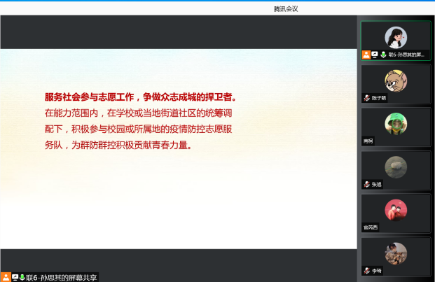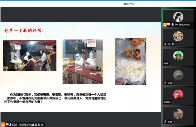 在这次志愿活动中,我感受颇深。这是一次非常难忘的亲身经历,让我真切感受到一线基层工作人员、医务工作者的不易。也让我深刻的意识到我们这一代人长大了,可以为自己的家乡尽一份力量了!作为新时代青年,最应该在这个时候挺身而出,在抗击疫情阻击战中,积极发挥党员的先锋模范作用。在志愿工作结束后,我立即给支部党员们召开了视频会议,分享自己在本次经历中所获得的感受,并鼓励支部党员积极参加志愿者活动、带头服务他人。支部的在校党员也非常积极,怀揣着一颗乐于奉献的心陆续报名学校的防疫志愿者。