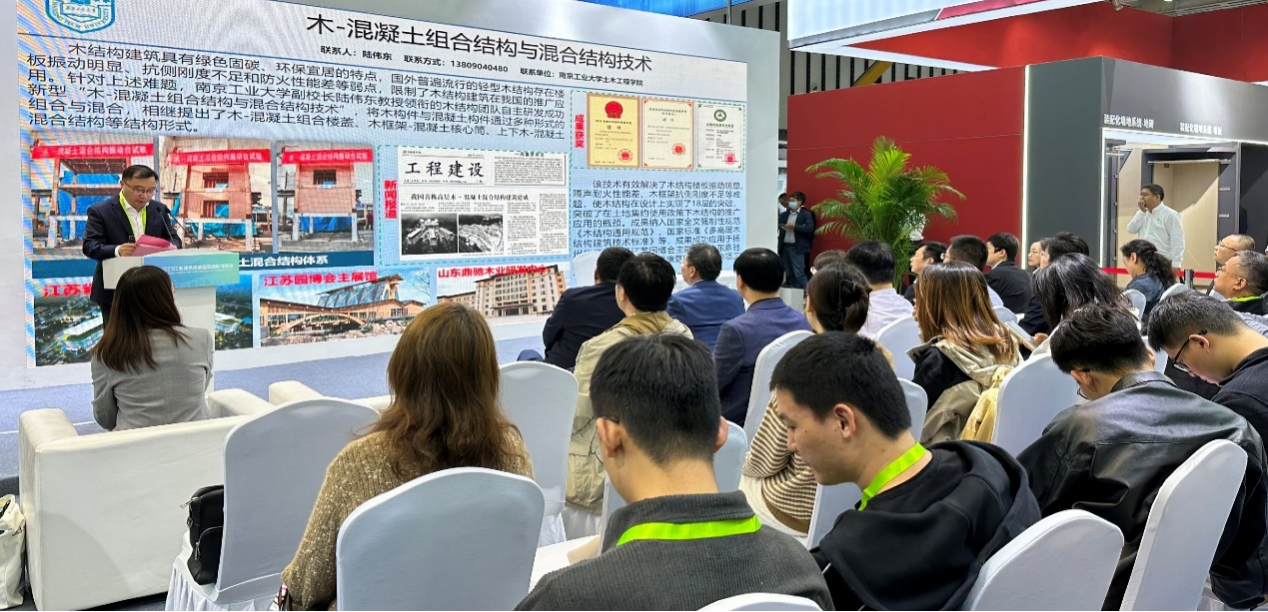 10月10日至11日,2023江苏绿色低碳建筑国际博览会于在南京举行。本次博览会以“绿色城乡,迈向更低碳的未来”为主题,重点展示国内外绿色低碳建筑、城乡绿色低碳发展实践和最新技术成果,推动相关产业向高端化、智能化、绿色化、融合化发展。我院木结构、复合材料结构和结构减隔震相关技术成果以图片、展品、视频和路演等多种形式全媒体展示。