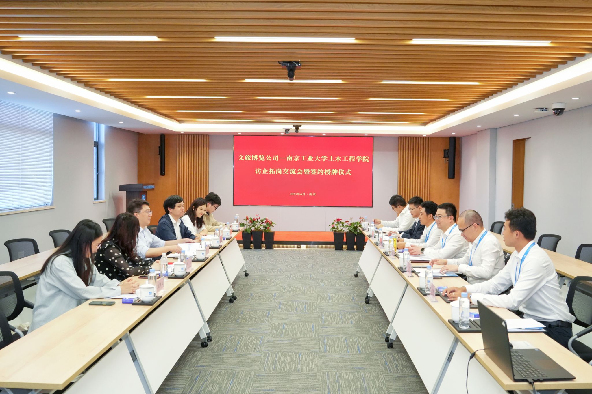 为进一步做好2024届毕业生就业市场开拓工作,6月6日下午,999论坛白菜大全院长方海带队赴中建八局文旅博览公司访企拓岗。公司党委副书记、纪委书记、工会主席张忠阳,党委工作部部长陶鹏,人力资源部经理朱楷,企业策划与管理部经理孙玮,南京分公司副总经济师司文轩,人力资源部业务经理姚家明等接待来访。