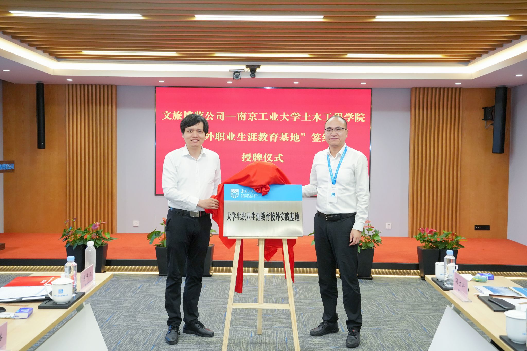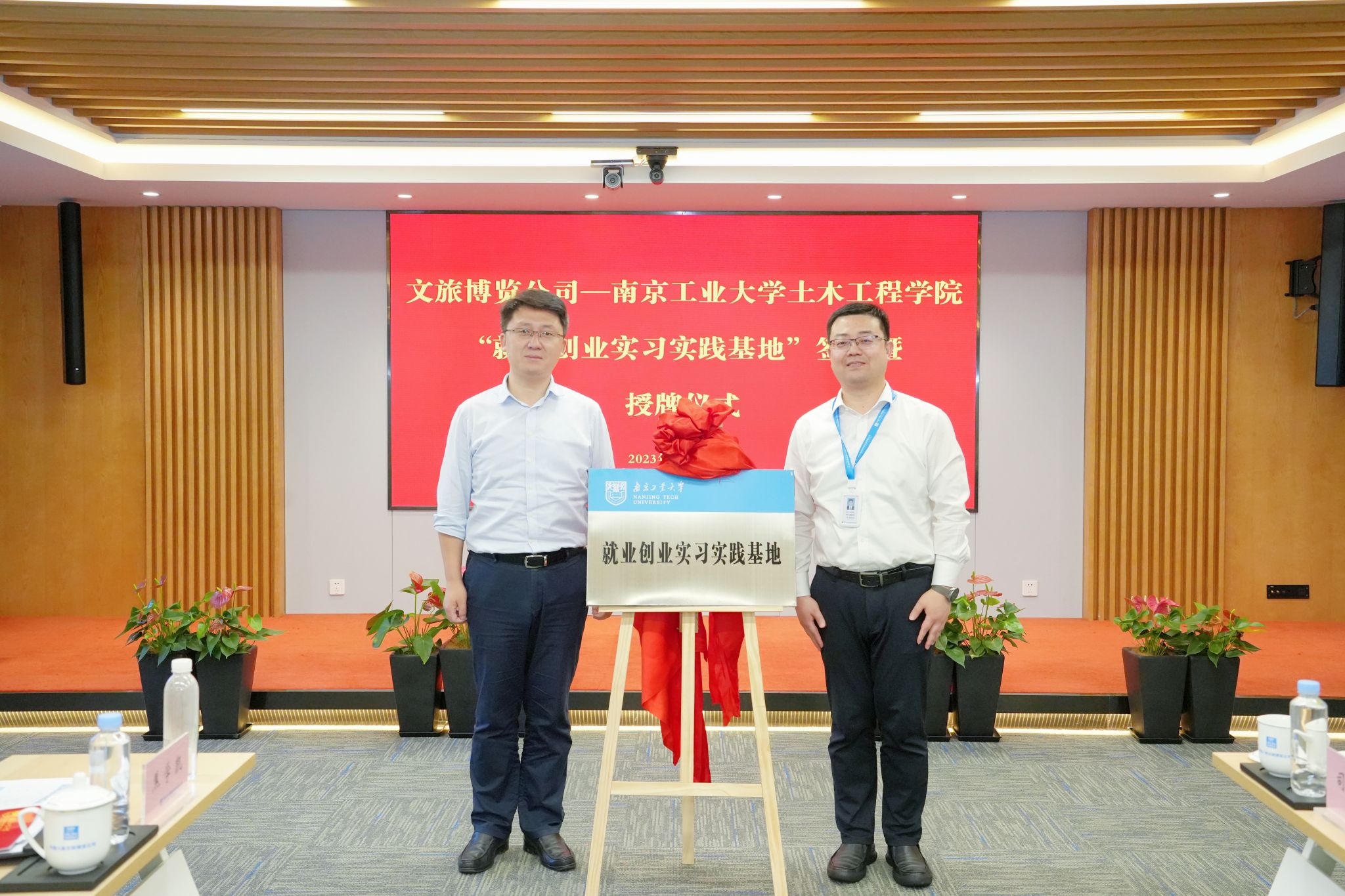 张忠阳书记在致辞中对方海院长一行表示热烈欢迎,并指出要贯彻落实党的二十大报告中“以文塑旅,以旅彰文”精神,希望双方在协同发挥党组织政治优势、协同健全联建工作机制、协同探索人才双向培养模式等三个方面加强合作,推动文旅事业再上新台阶。双方共同观看了企业宣传片,听取了孙玮经理对企业的全面介绍。方海院长对文旅公司长期以来对学院发展的关心支持表示感谢,充分肯定了文旅公司在项目开发、传承创新等方面取得的突出成绩。方院长从建筑业转型与双碳结构、绿色材料与低碳结构、智慧建造与智慧运维、城市韧性与防灾安全、学院基本情况等五个方面做了详细介绍,期待双方进一步加强科产教融合,在人才培养、科学研究、社会服务等方面全面合作,实现共赢。随后,双方就校企合作具体事宜进行深入交流并进行“就业创业实习实践基地”和“职业生涯教育校外实践基地”签约暨授牌仪式。