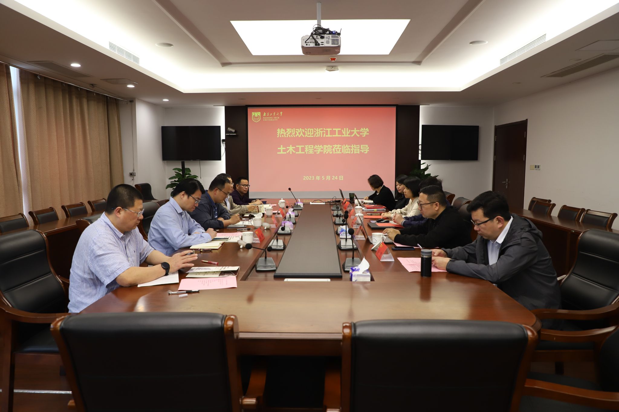 会前,在学院实验室主任万里等人员的陪同下,姚鹏书记和孙宏磊院长一行参观了学院实验室。会后土木学院张涛书记与浙工大土木学院领导亲切交谈。