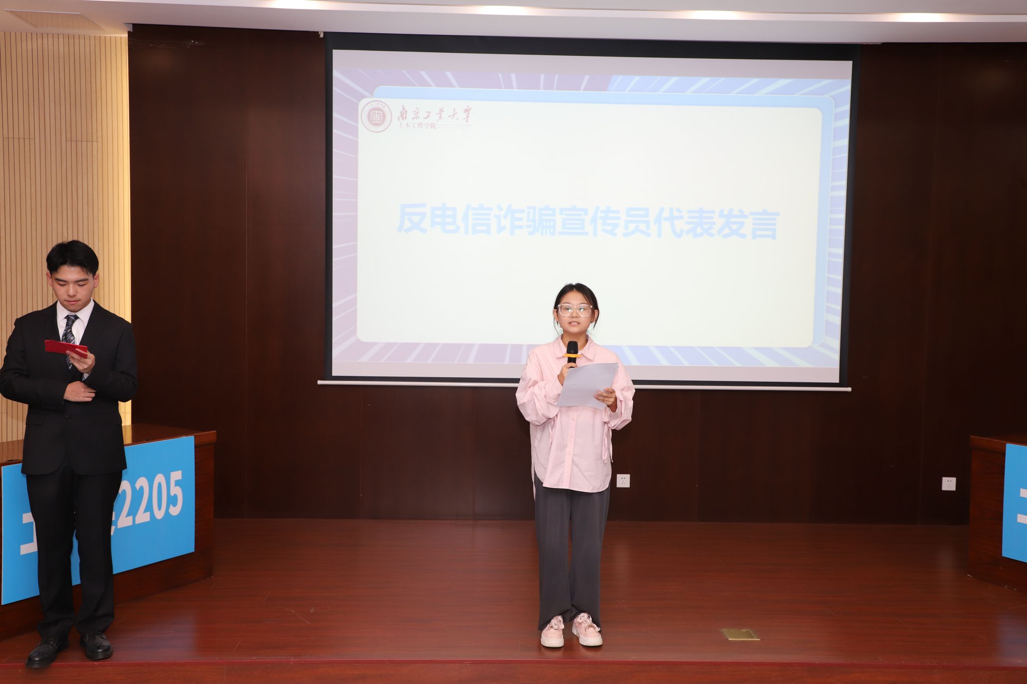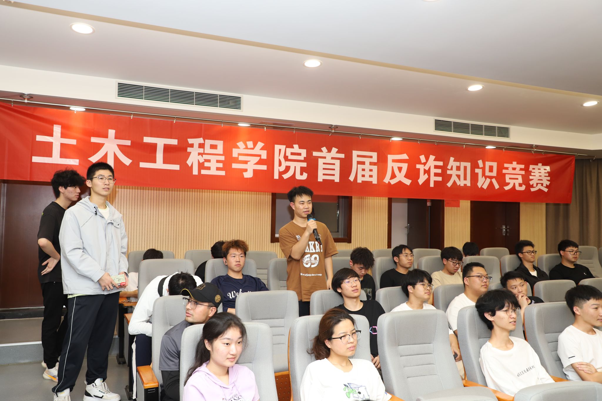 为深入贯彻习近平总书记关于打击治理电信网络诈骗犯罪工作的重要指示精神,提高学生识诈反诈能力,5月17日下午,999论坛白菜大全举办首届反诈知识竞赛。江北新区内保支队二大队教导员叶江山、顶山派出所社区民警吴殿明、999论坛白菜大全党委副书记路遥、保卫处治安科周子皓及土木学院辅导员代表、学生代表参加活动。