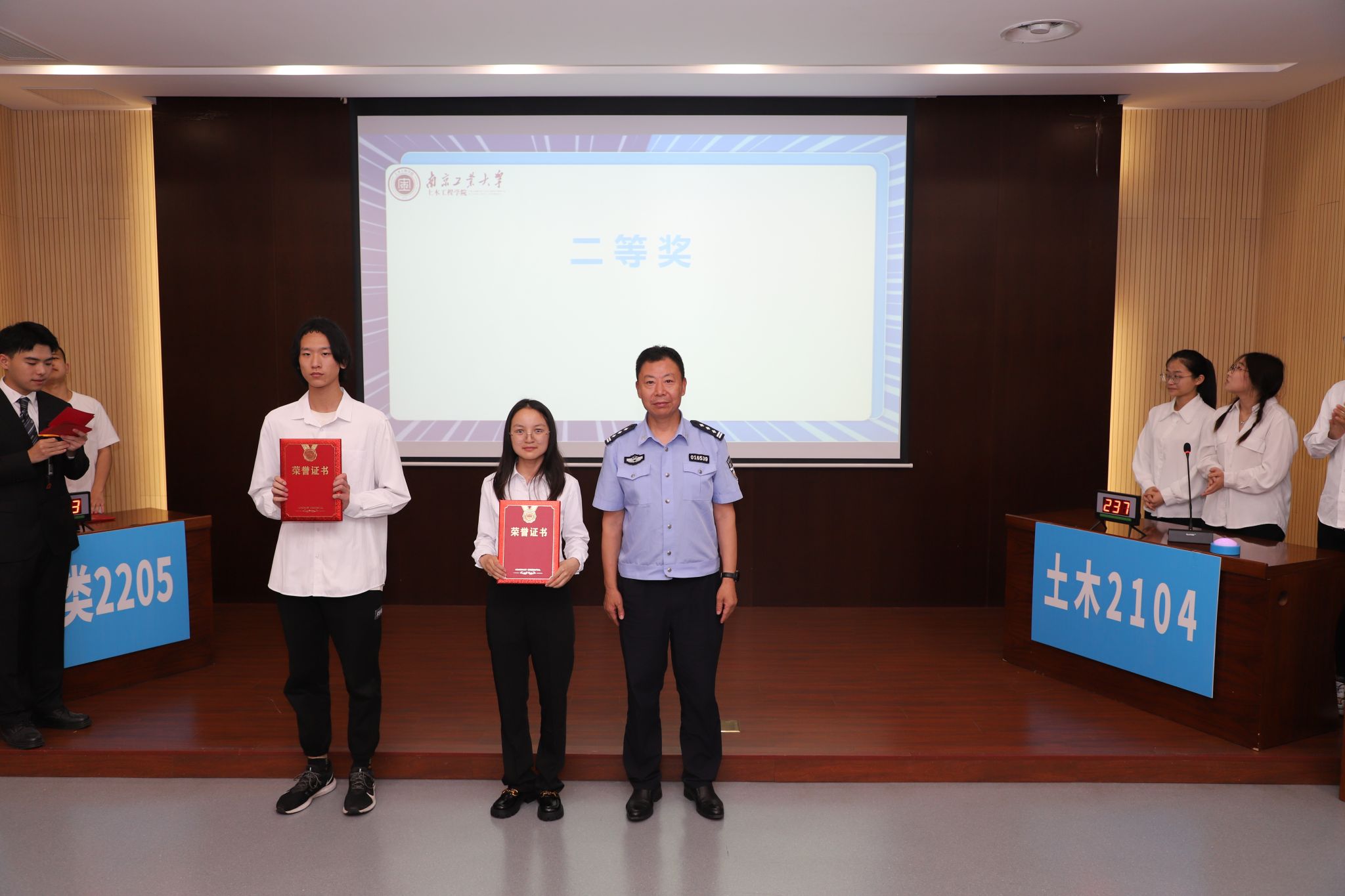 比赛开始前,周子皓老师宣读学院2022年度反电信诈骗先进集体表彰名单。叶江山警官、吴殿明警官共同为获奖集体颁奖,随后班级反诈宣传员代表发言,介绍了班级反诈工作开展经验。竞赛环节共设必答题、抢答题、风险题和主观题四个环节。必答题环节,各参赛队伍稳定发挥,冷静作答;抢答题环节紧张激烈,展现了选手们果断敏锐的风采;风险题和主观题环节则比出了选手稳健的临场应变能力和扎实的反诈知识储备。现场还设置了有奖问答互动环节,观众们积极参与,赛场气氛热烈。经过激烈角逐,土木2104班获一等奖。