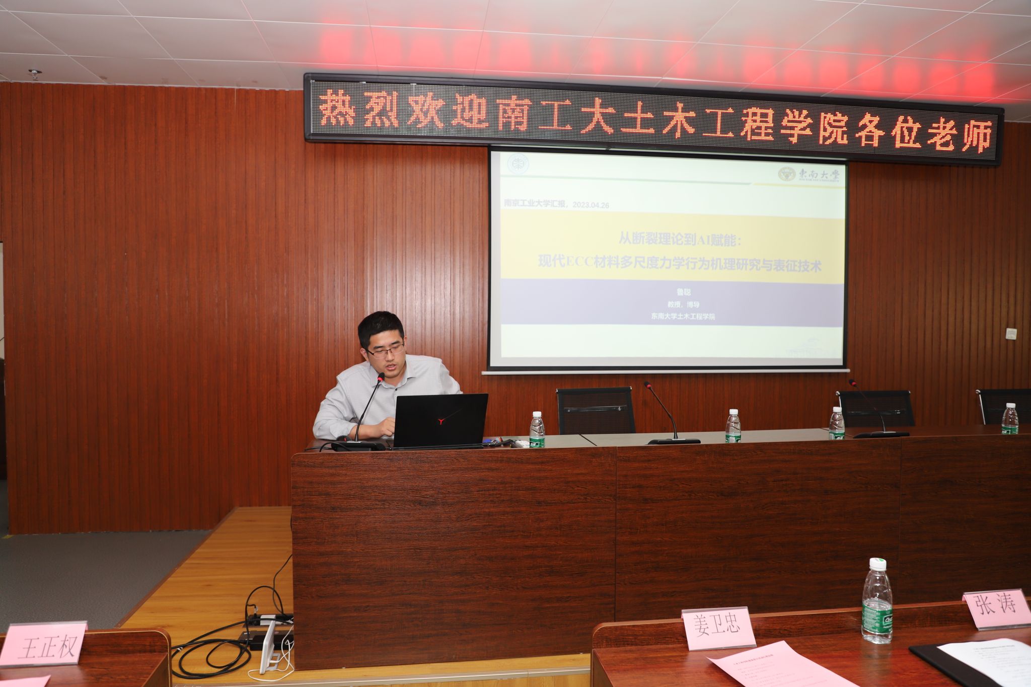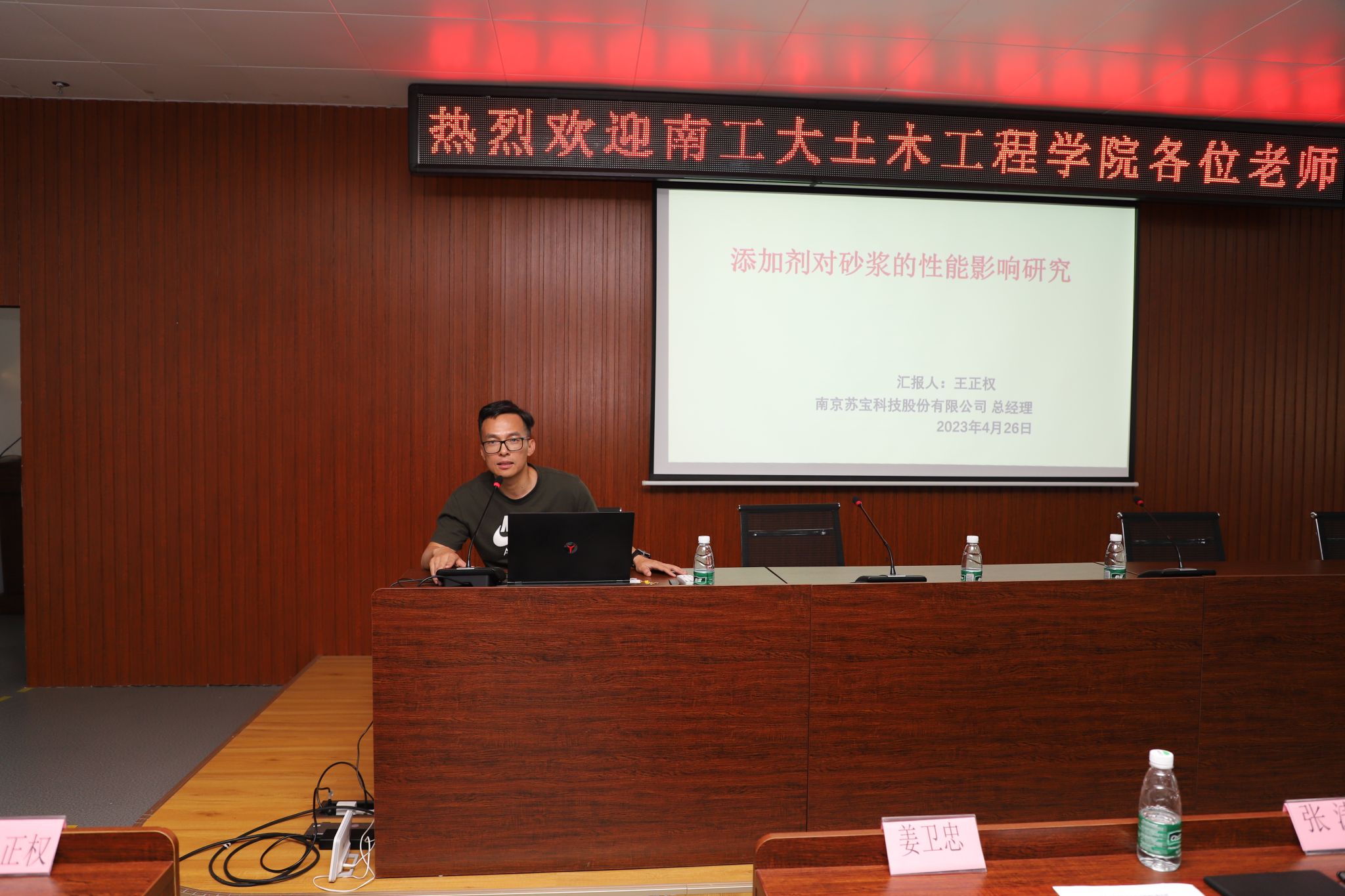 王爱芝副总经理介绍了南京扬子检安公司的整体概况、发展趋势、市场规模。江苏省住房和城乡建设厅科技发展中心副主任张赟作《碳达峰目标下江苏城乡绿色发展路径研究》报告,东南大学青年首席教授鲁聪作《从断裂理论到AI赋能—现代ECC材料多尺度力学行为机理研究与性能优化》报告,南京苏宝科技股份有限公司总经理王正权作《添加剂对砂浆的性能影响研究》报告。