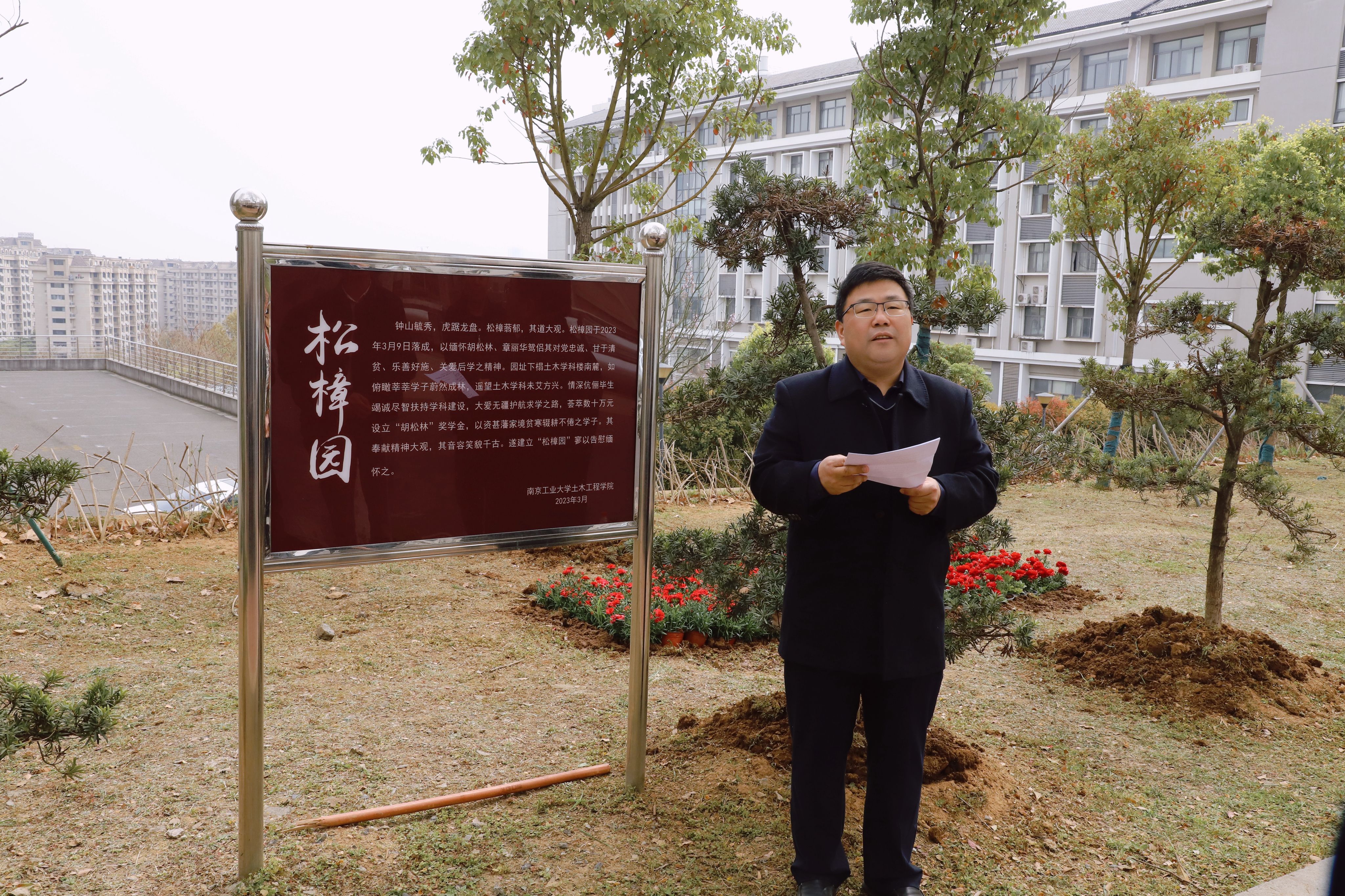 方海院长介绍了胡松林先生的生平和扶掖后学的事迹。他表示,松樟园象征着胡松林和章丽华的精神永存,学院教师们深受两位先生的事迹感染,成立了“松樟园教育基金”。新基金的成立旨在将这份爱心接力传递,为更多需要帮助的学生提供支持,让大爱精神在南工大生生不息。